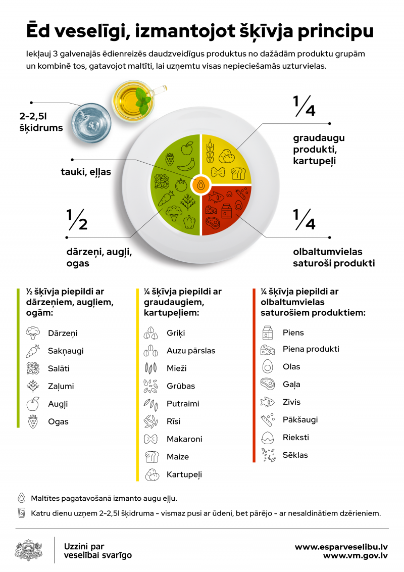 Infografika: Ēd veselīgi, izmantojot šķīvja principu